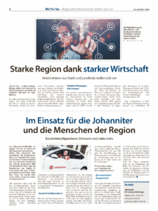 - als Advertorial: Den Text übernimmt auf Wunsch unsere Redaktion, Anlieferung von Bild und Logo durch den Kunden